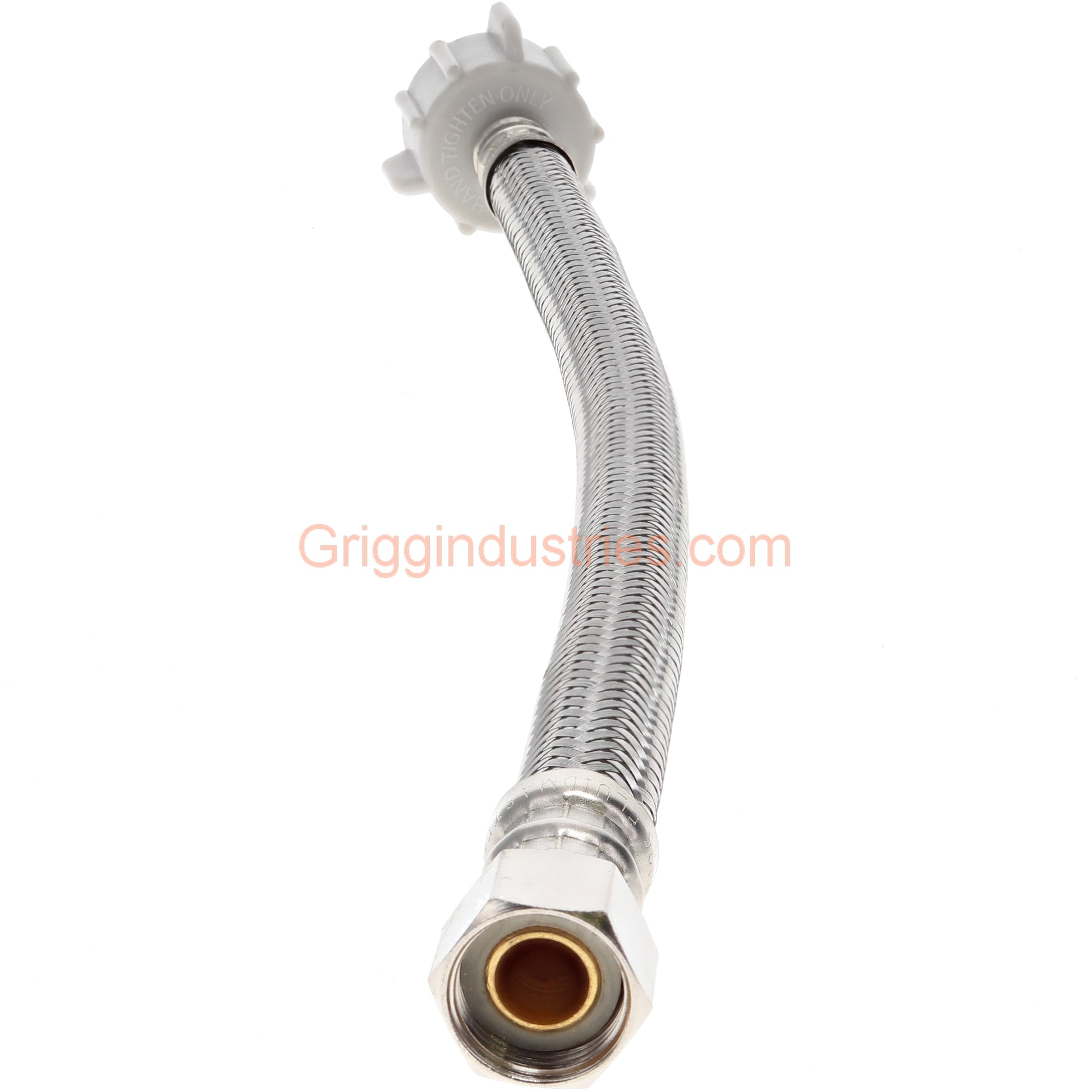 Genuine Arrowhead Brass HS37C87B-12 12" toilet supply line. This part is a braided stainless steel line that can be used on almost any toilet. The line comes complete with the hex nut to secure the line to the shutoff valve, and the nut to secure the line to the fill valve. Inside of each connecting end there is a small rubber gasket designed to prevent any leaks from the connection.