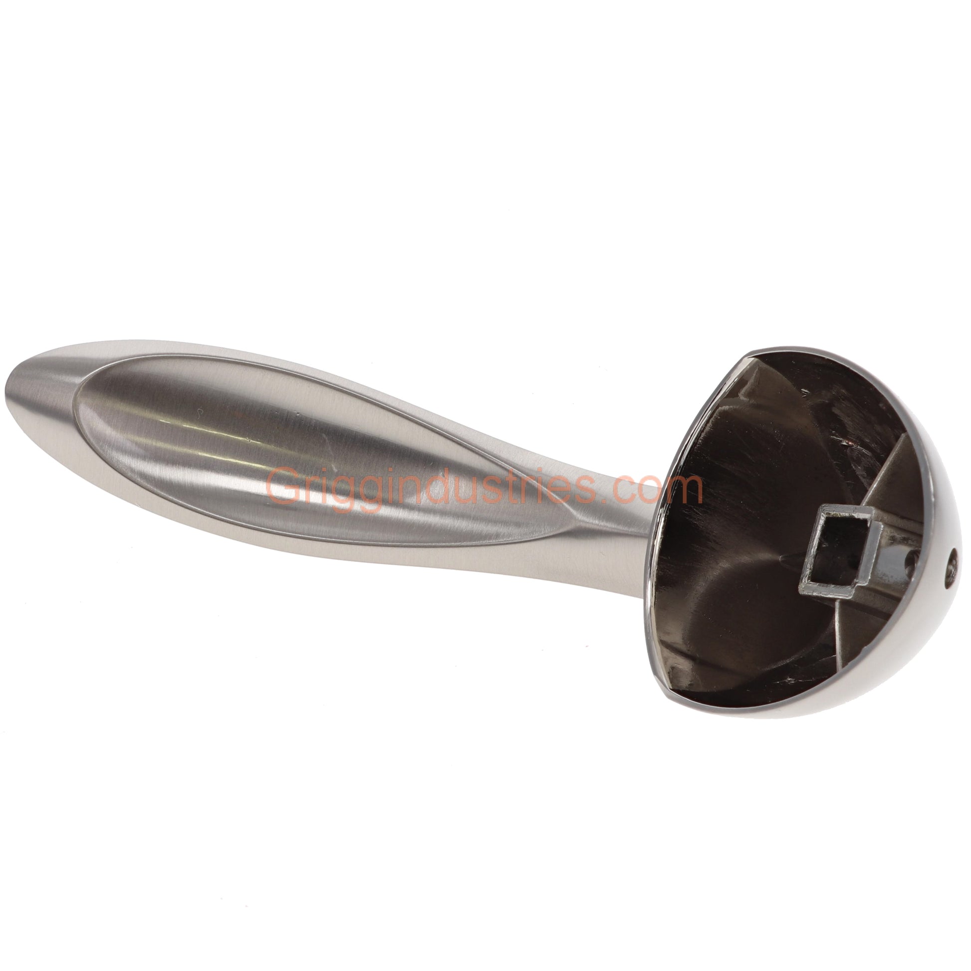 Gerber A029647NP handle in brushed nickel finish. This handle has the hole in the back for the set screw to hold the cartridge in place. This handle has a square broach, which is where the cartridge goes into the handle.