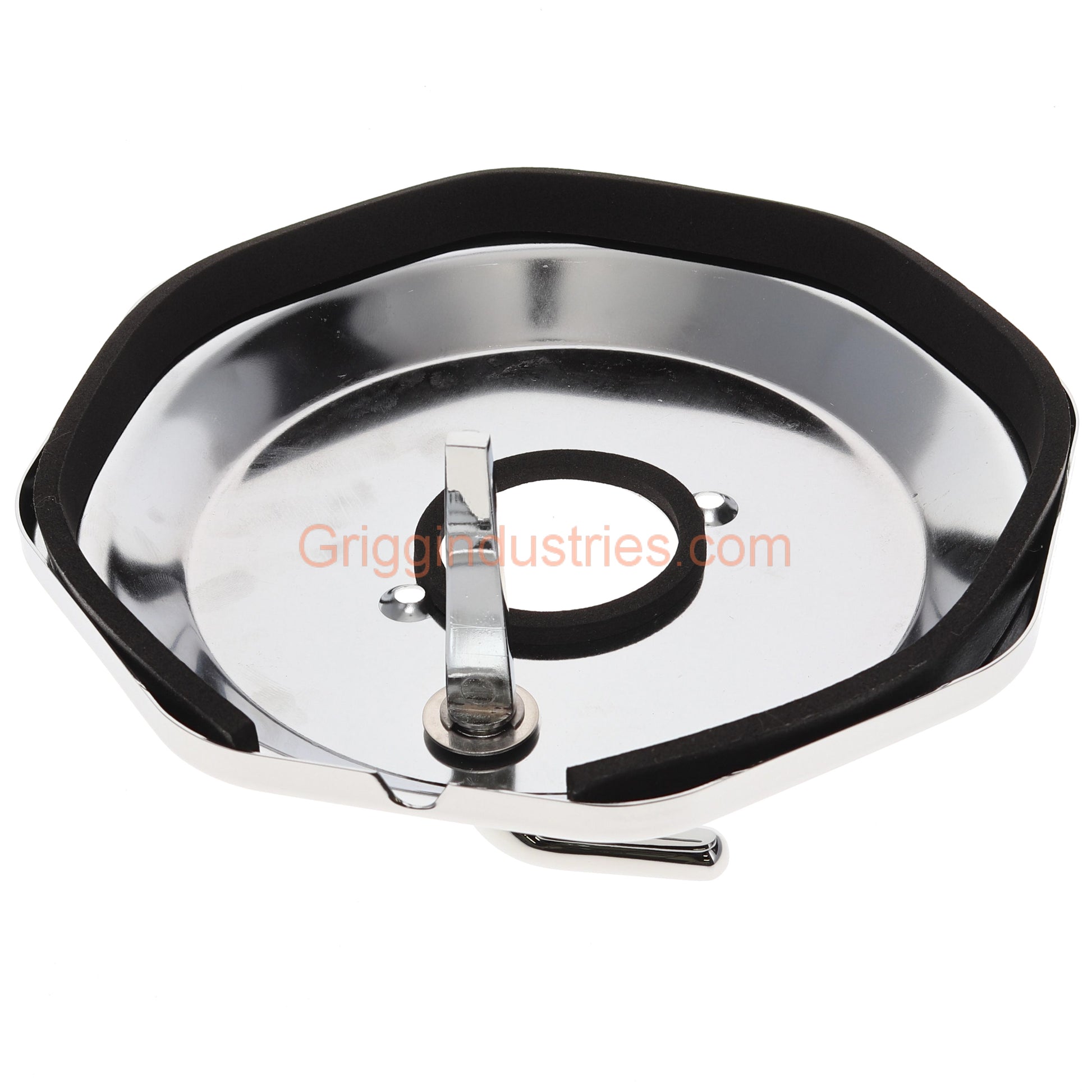 Plumbers Emporium A602714CP escutcheon and diverter handle assembly. This is in chrome finish. This escutcheon is designed for the Gerber/Danze model D503066 shower valve. There will be two holes for screws straight across from each other. This is important to note, because other escutcheons may have screw holes that are offset from each other. It will also have the hot, and cold shown on the faceplate. The back end of the A602714CP is an octagon shape, and has an outer diameter of approximately 7 2/8 inches. The inner diameter of the hole in the center is roughly 1 6/8 inches.