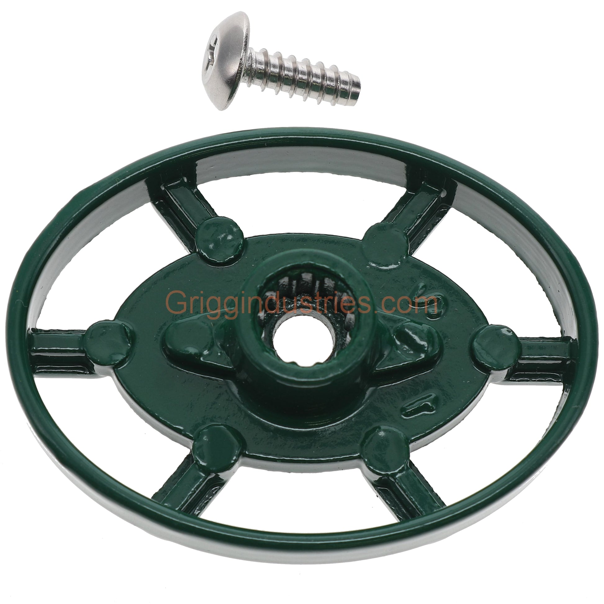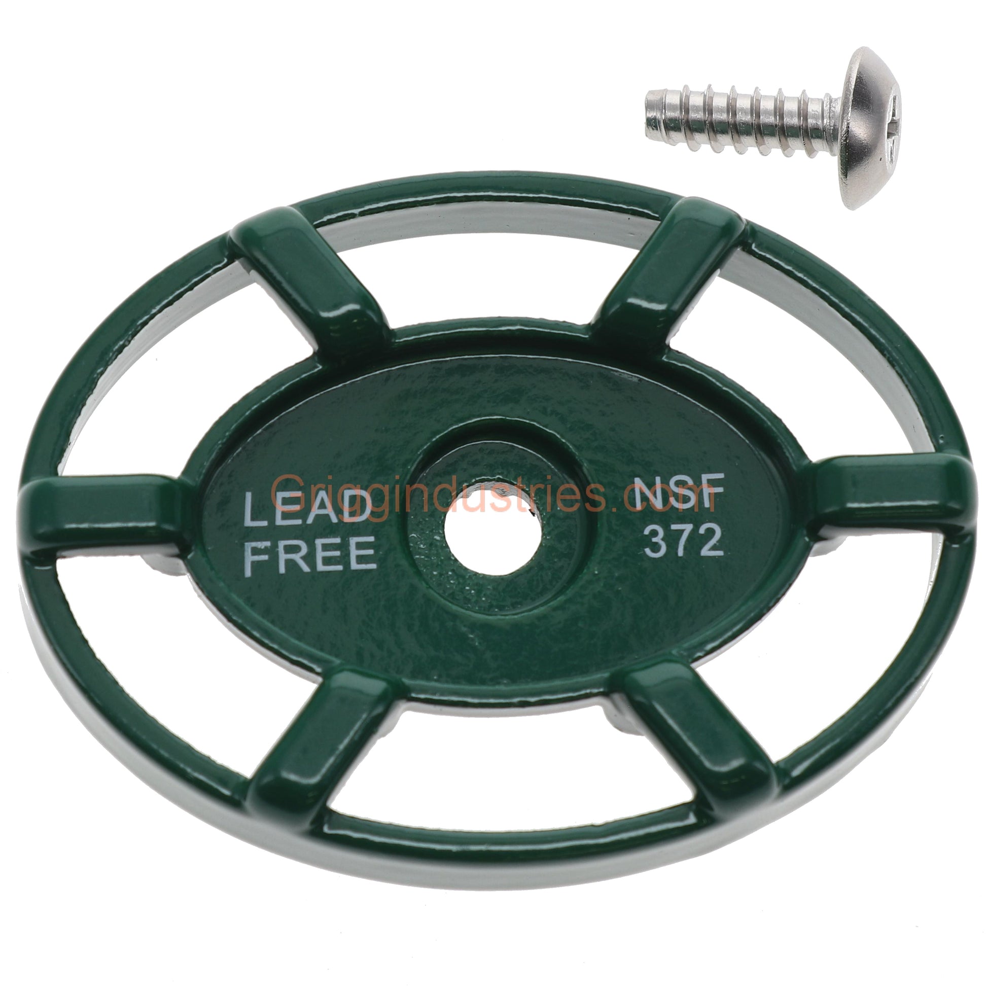 In conclusion the ABP Arrowhead Brass Faucet Handle PK1290 comes complete. Both the handle and screw are metal. The handle comes in a green finish. Also the teeth on the handle are to go onto the stem. The screw then goes through the handle into the stem. However the screw has to cut the threads into the stem.