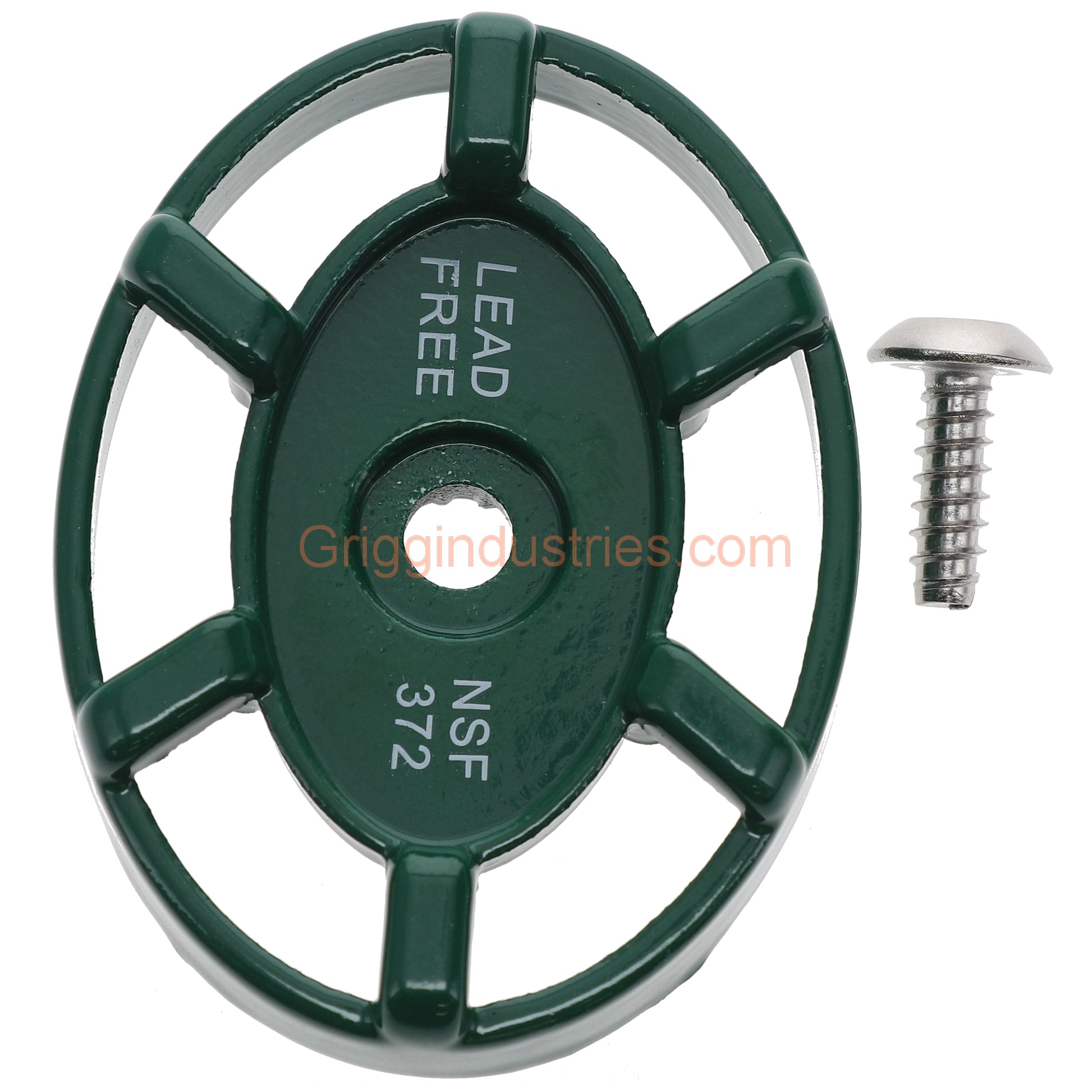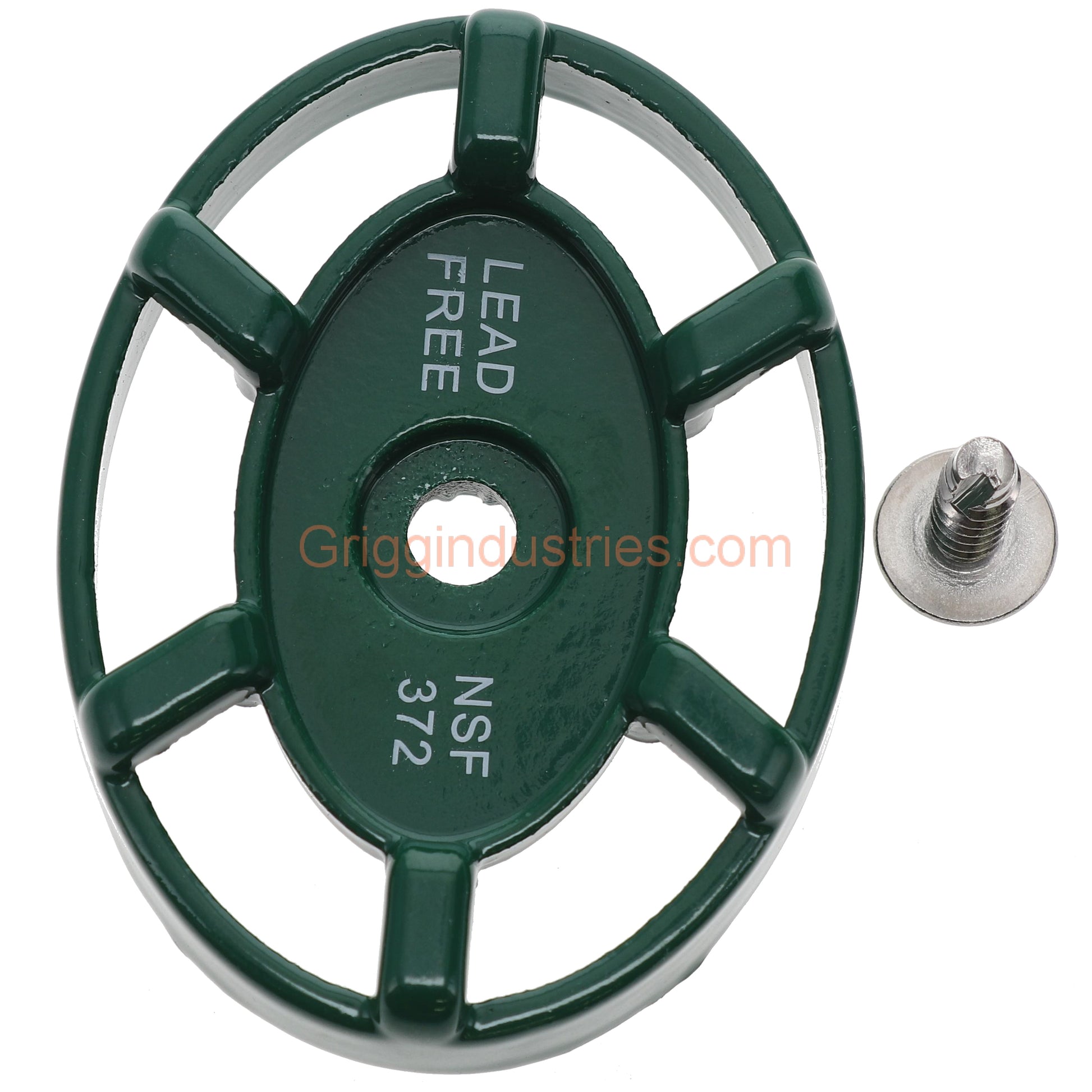 ABP Arrowhead Brass Faucet Handle PK1290 Comes with screw. This is the genuine Arrowhead Brass Handle it is metal with an oval shape it has teeth inside the small round end to match the arrowhead stem. If the handle is broken check the end of the stem for damage. Arrowhead products are unique and universal parts do not fit them. Green oval ABP Handle.