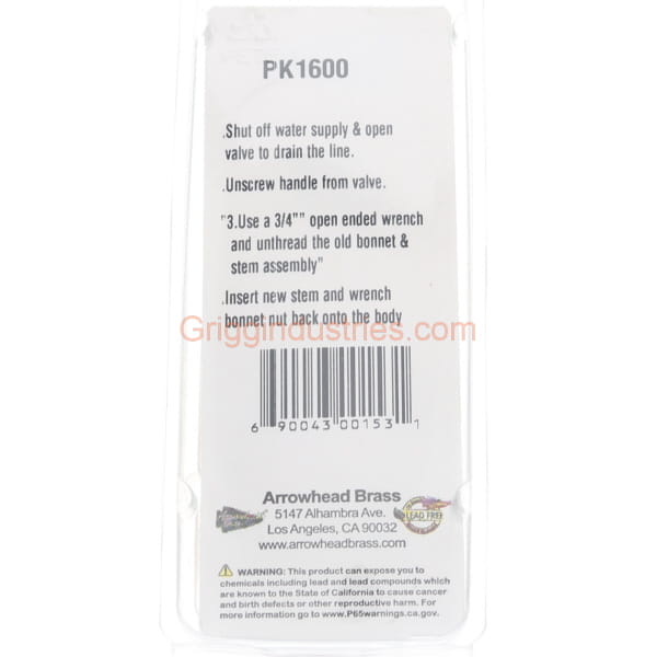 - Material: The PK1600 stem and bonnet assembly is made of durable material to withstand outdoor conditions.