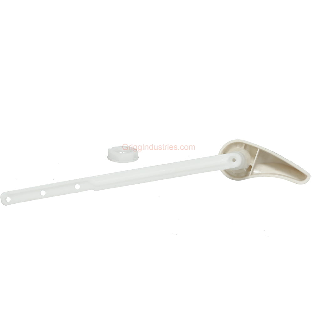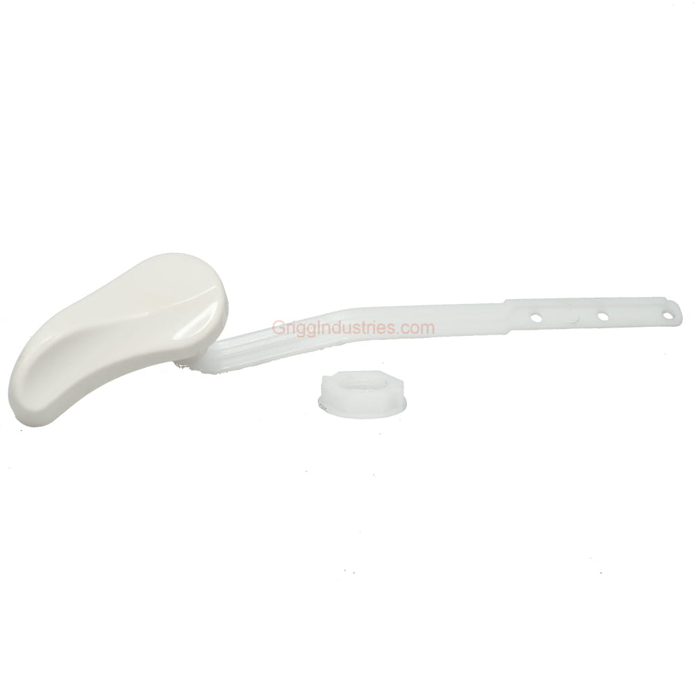 Briggs B358101 White Lever. This lever is for the Altima Max toilets. Therefore it fits tanks 4140, 4142, and 4143. It is the genuine replacement lever for those models. Also the nut and lever are plastic. Therefore they will not rust. The arm has holes in it. However they are for the chain to connect to the flapper. When you push down the lever it lifts the flapper.