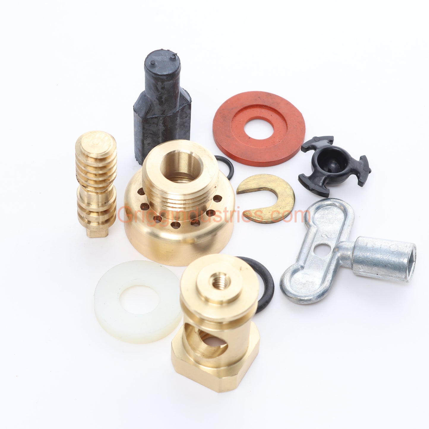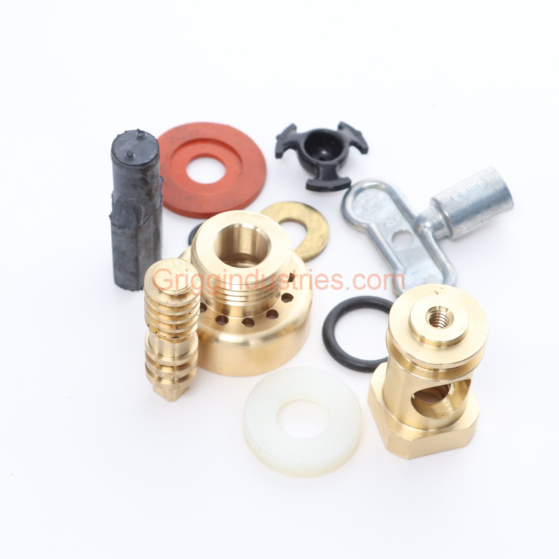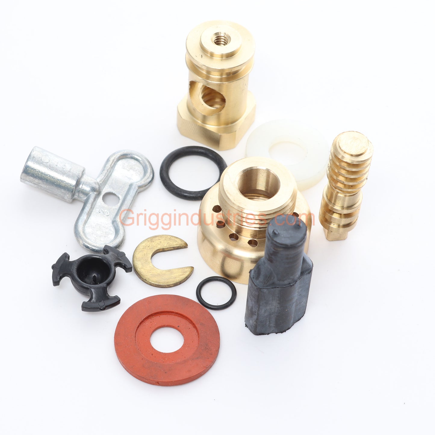 Clayton Mark CRK2 Major Repair Kit For Clayton Mark Wall Hydrants. The full complete rebuild kit includes the drive screw assembly, retainer seal, rod, face nut, O-ring, diverter diaphragm, diverter check spider, hose piece, plunger, and drive sleeve. This kit also comes with a parts breakdown, and installation guide. These hydrants are no longer made, but the kit is available. Note the shape of the plunger is flat with a round end, and cannot be used to replace the bullet shaped plunger.