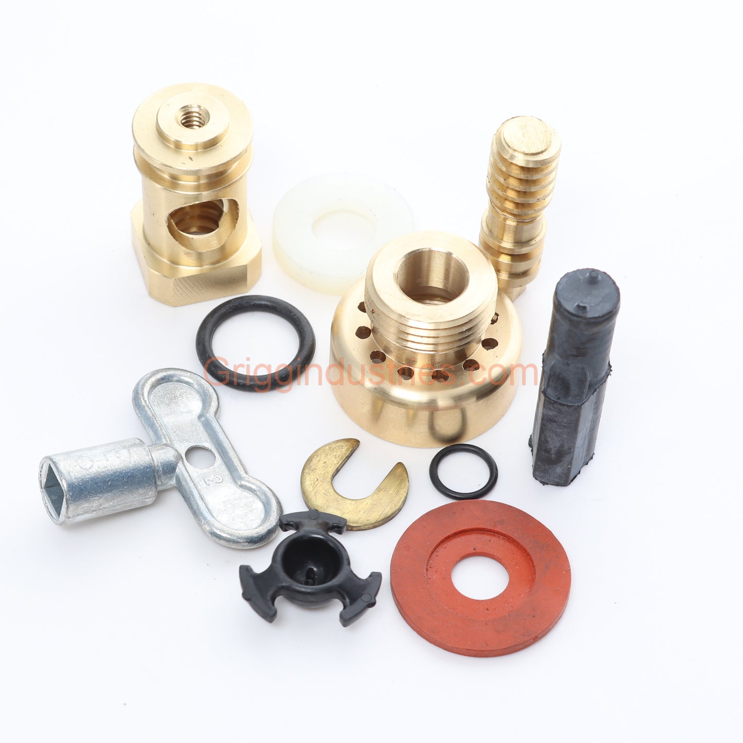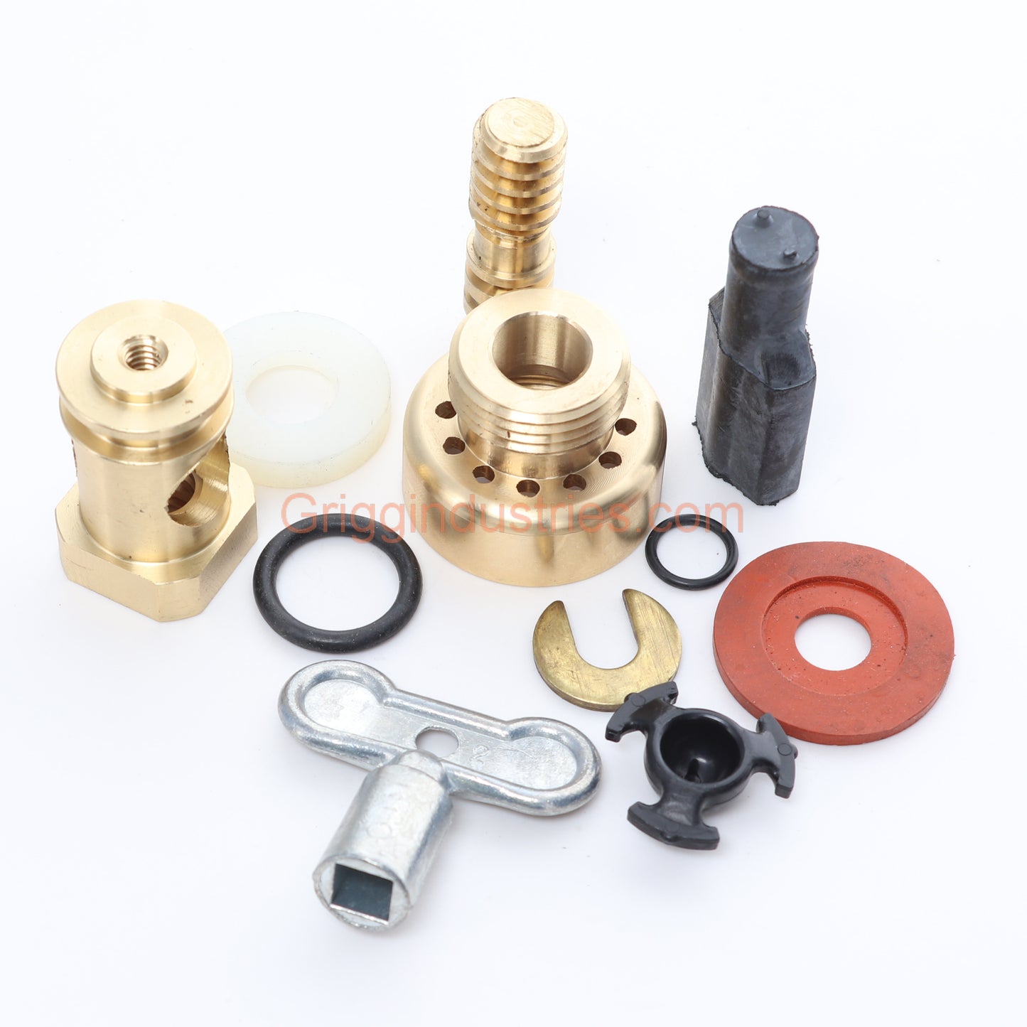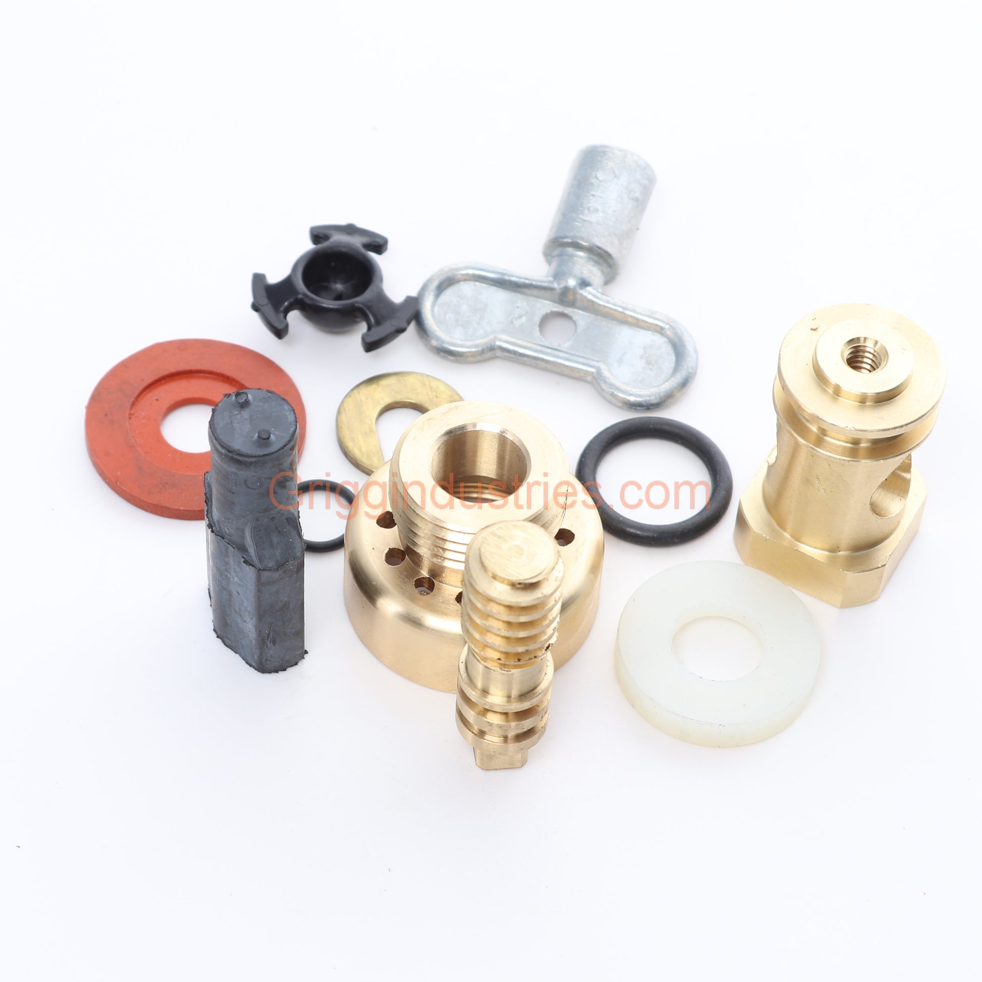 Clayton Mark CRK2 Major Repair Kit For Clayton Mark Wall Hydrants. The full complete rebuild kit includes the drive screw assembly, retainer seal, rod, face nut, O-ring, diverter diaphragm, diverter check spider, hose piece, plunger, and drive sleeve. This kit also comes with a parts breakdown, and installation guide. These hydrants are no longer made, but the kit is available. Note the shape of the plunger is flat with a round end, and cannot be used to replace the bullet shaped plunger.