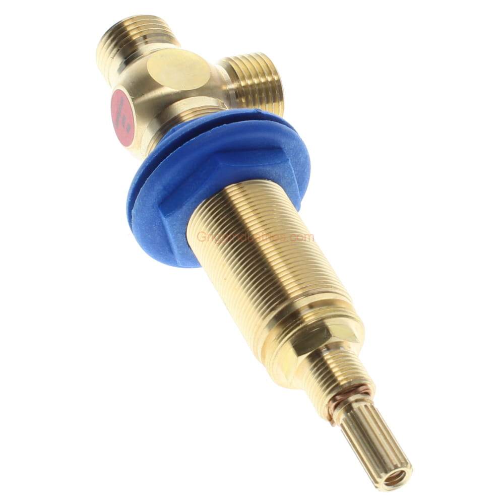 1/2" Valve Body For widespread Lavatory Sinks. This Valve Body Is for The Hot Side. The Stem Has 16 teeth, and is Right Turn Close. Faucet Stem is Used In Altmans, American Faucet, Andre Collection, Brasstech, Newport Brass, California Faucet, Concinnity, IW, Mico, Paul Decorative, Phylrich, Santec, Sigma, and others. Stem is 2 5/8 "Total Length and Measures 3/4" across the bottom. Stem number Is 4686.