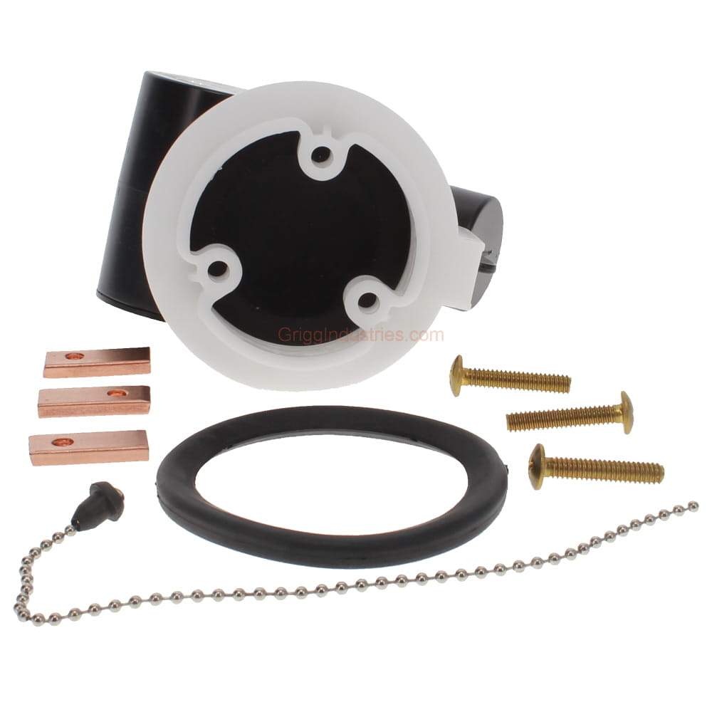 American Standard 47107-0070A one piece flush valve assembly. This flush valve comes with the flush valve gasket, 3 brass screw, and 3 copper feet, disc, and chain.
