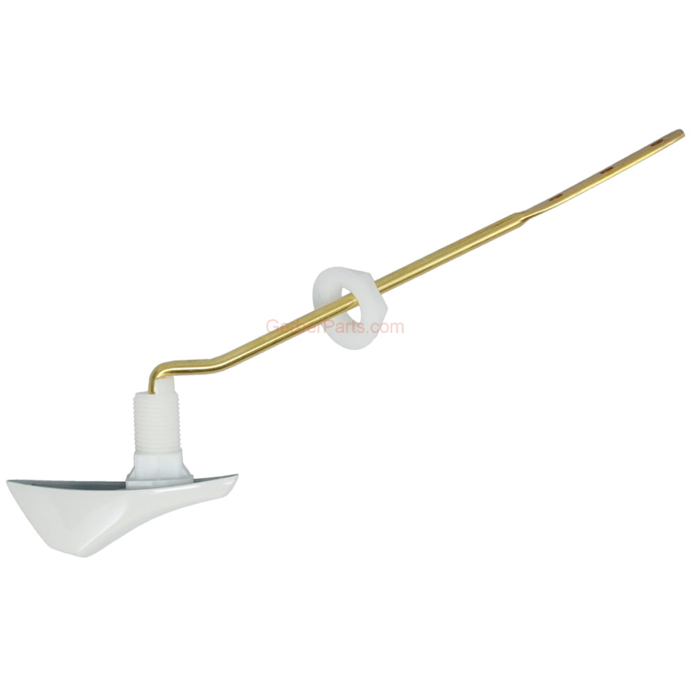 Genuine Gerber GA700382WH Lever. This lever will also come with the nut to hold it onto the tank. The lever is metal and has the holes in the arm to connect the hook from the flapper.