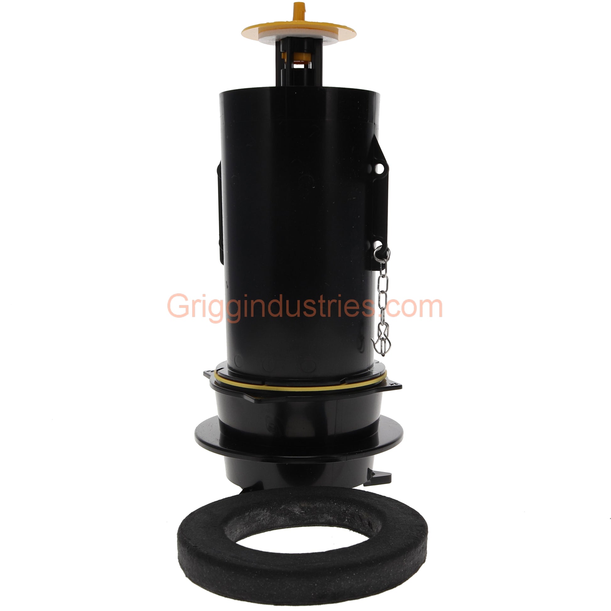 Genuine Kohler 1255785 canister flush valve. This flush valve comes complete with the gasket that seals between the tank, and flush valve. It will also come with the yellow flush valve seal, and the chain that will hook to the flush handle. There will also be an installation guide in the box with the flush valve. The 1255785 is designed for the Kohler tank model K3619. At the bottom of the flush valve there will be 3 teeth, or triangular prongs. The teeth are what will secure the flush valve to the toilet tank. The outer diameter at the base of the flush valve measures approximately 2 3/4 inches. The total height of the flush valve, measured from the base up to the point on top of the yellow canister is right at 10 1/4 inches.