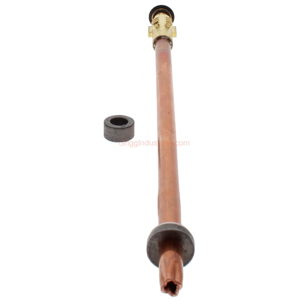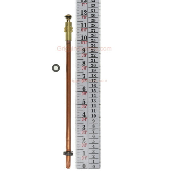The Mansfield 500 Series Stem 123-0093 is for a 8 inch wall. The stem from end to end will measure 12 inches. The Mansfield 123-0093 stem comes complete and ready to install. In Addition, The end that faces out of the faucet has a square shape for the handle screw to thread into it. The 123-0093 stem comes with the packing and support washer on one end, And includes a spring loaded end on the other. Along with male threads made of brass. The stem is for the 500 series faucet, which was made before 2006. The Mansfield 500 Series Stem is made from copper and brass. The Stem also has the O-ring and washer on the spring loaded end. When measuring the stem you want to make the measurement from where the handle would connect all the way down to the tip of the spring-loaded end with the end pressed out.