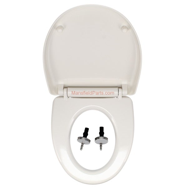PLEASE NOTE THAT TOILET SEATS ARE NOT RETURNABLE FOR ANY REASON DUE TO HEALTH CONCERNS. Genuine Mansfield white toilet seat for the Mansfield Elementary toilet. This seat come with the quick connect hardware, and instructions.