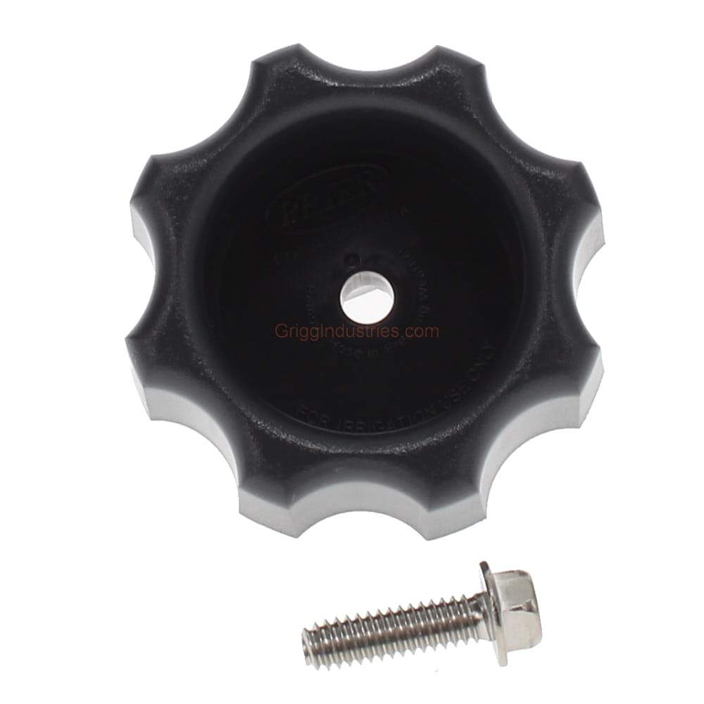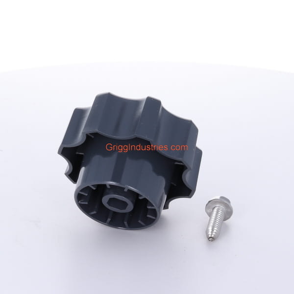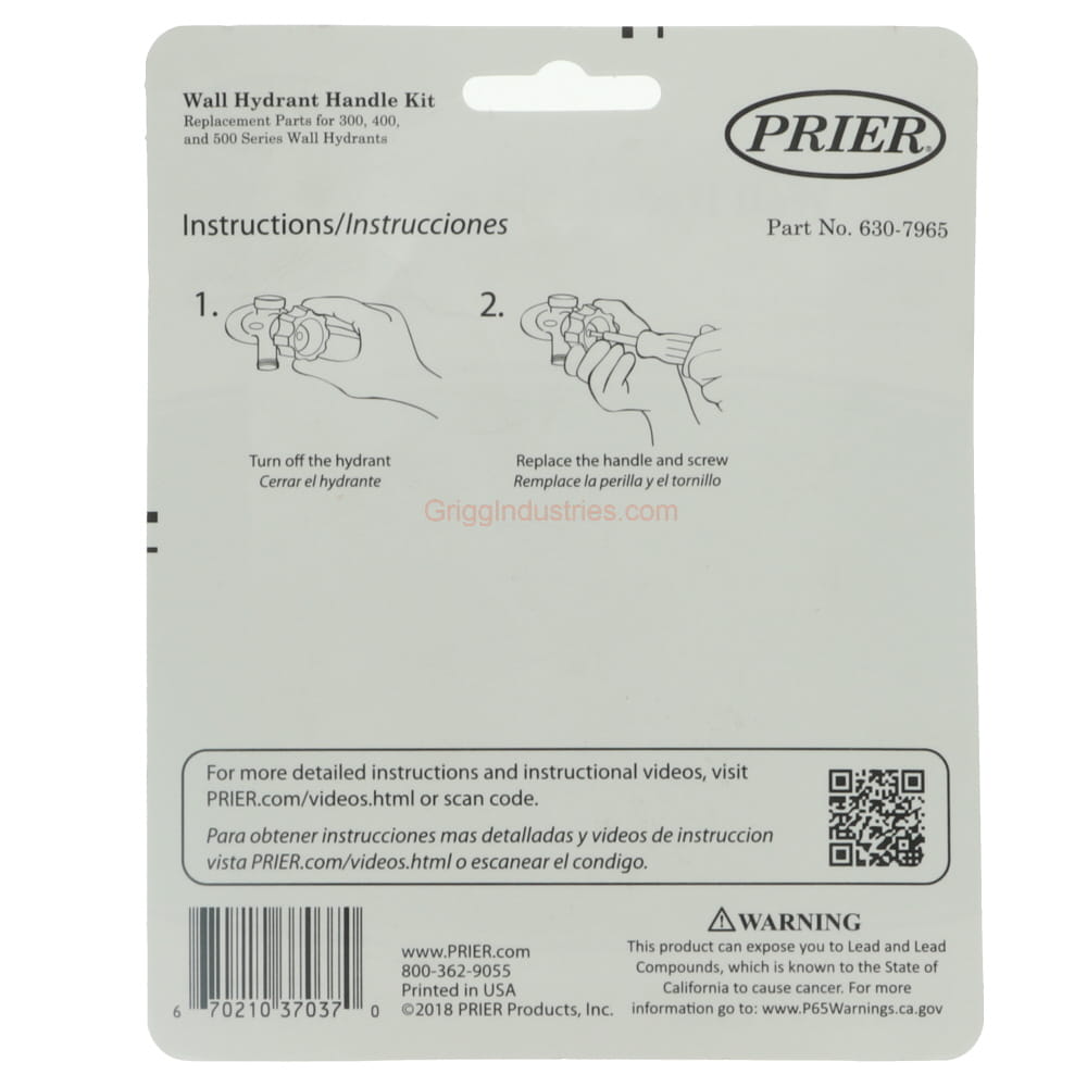 The Mansfield Faucet Handle 630-7965 comes with the screw. Therefore, the handle is ready to install into the faucet. This handle fits Mansfield faucets model 300, 400, and 500. This handle fits some Duraflo faucets as well. Prier 300, 400, and 408 also use this handle. The Screw that goes with this handle will thread into the squared end of the stem, which is inside the faucet. This handle is grey. However, Mansfield also offers this handle in tan. The handle is plastic. In addition to the handle and the screw, on the back of the package is a list of instructions. This handle threads directly into the stem. The screw for the handle is a self tapper, so initially putting the screw in may require a little bit of force.