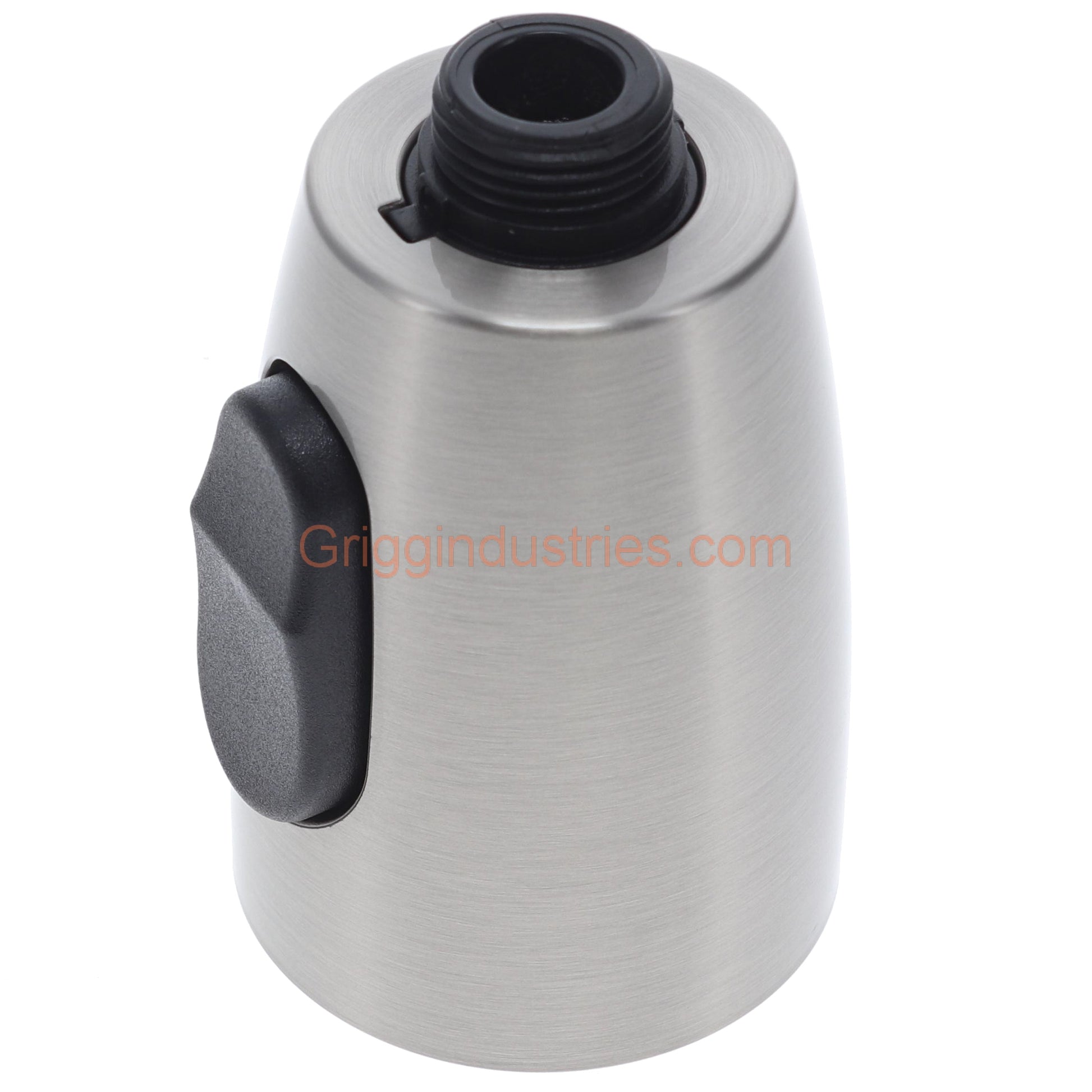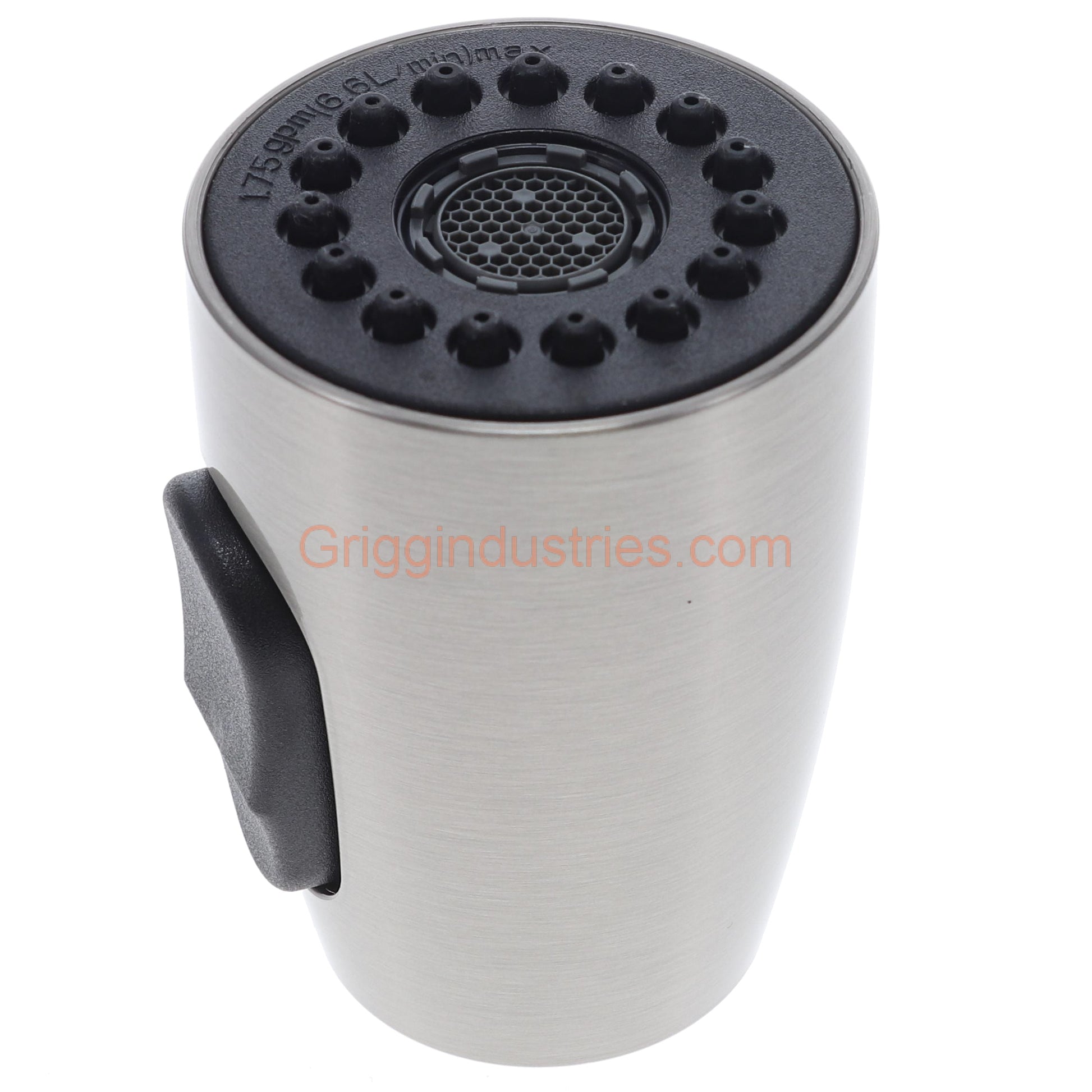 Plumbers Emporium A523178WNP-54 spray head in brushed nickel finish. This head will use about 1.75 gallons per minute. The button on the side of the spray head will allow you to change the way the water sprays. This spray head is compatible with several brands, and models including the Oakbrook 454423 kitchen faucet.